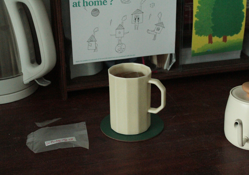 작업실의 차 & 커피 존 책상인 멀바우와 차분하게 어우러지는 느낌입니다.
