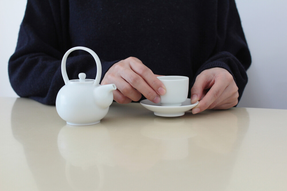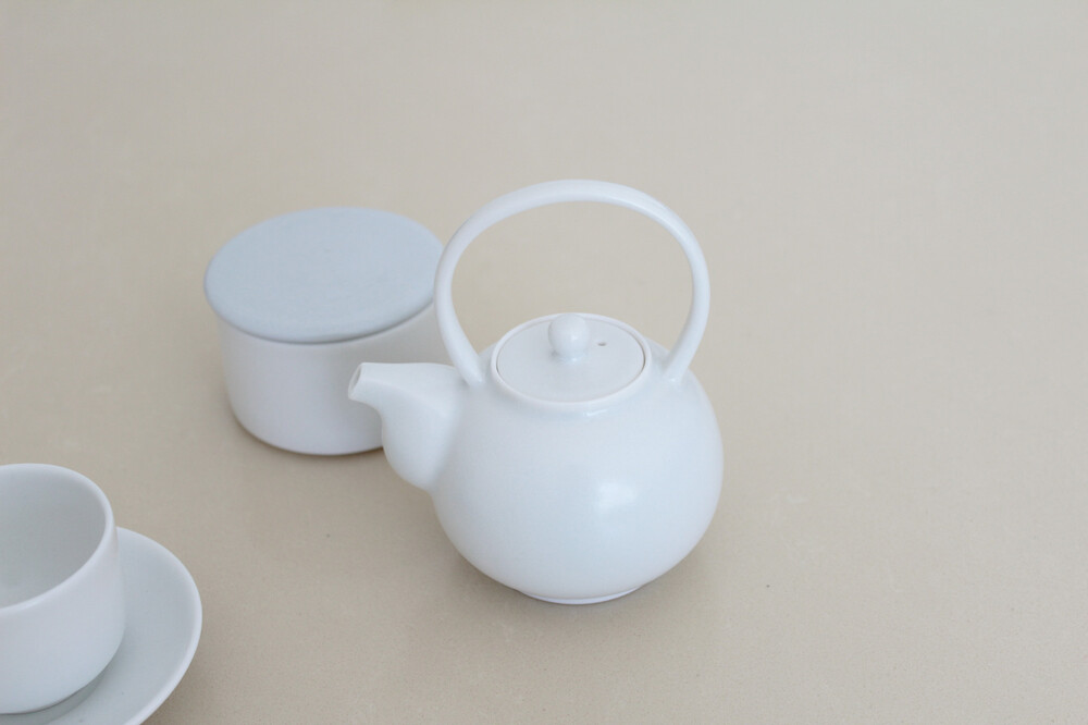 쉼 다관 세트는 겨울의 하늘의 푸른빛 색감을 지닌 유약을 사용하여 제작되었습니다.