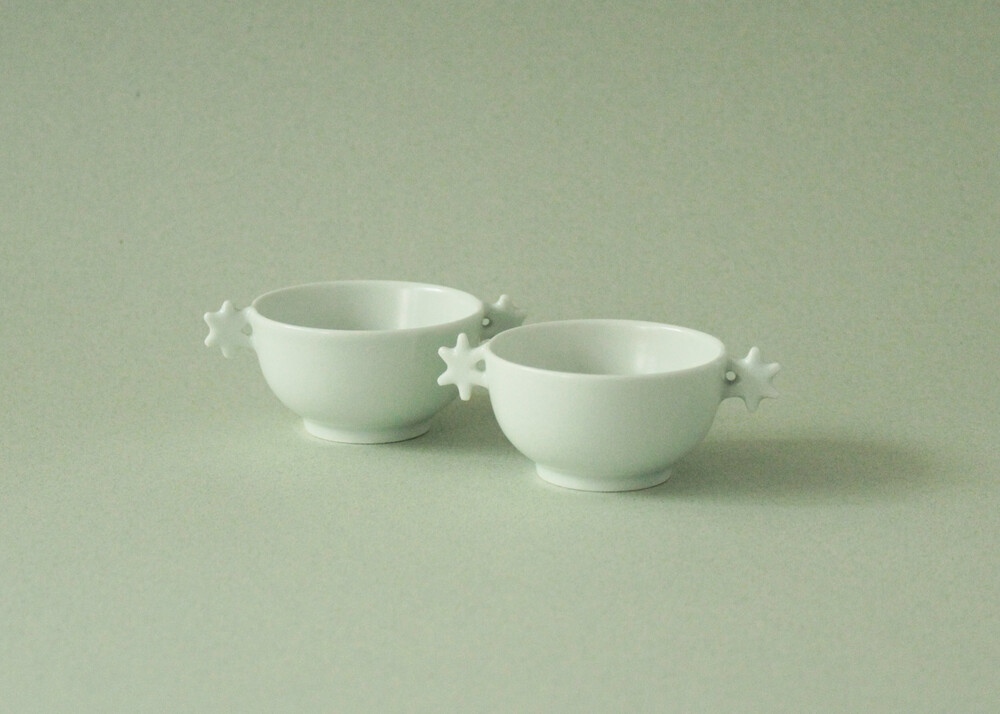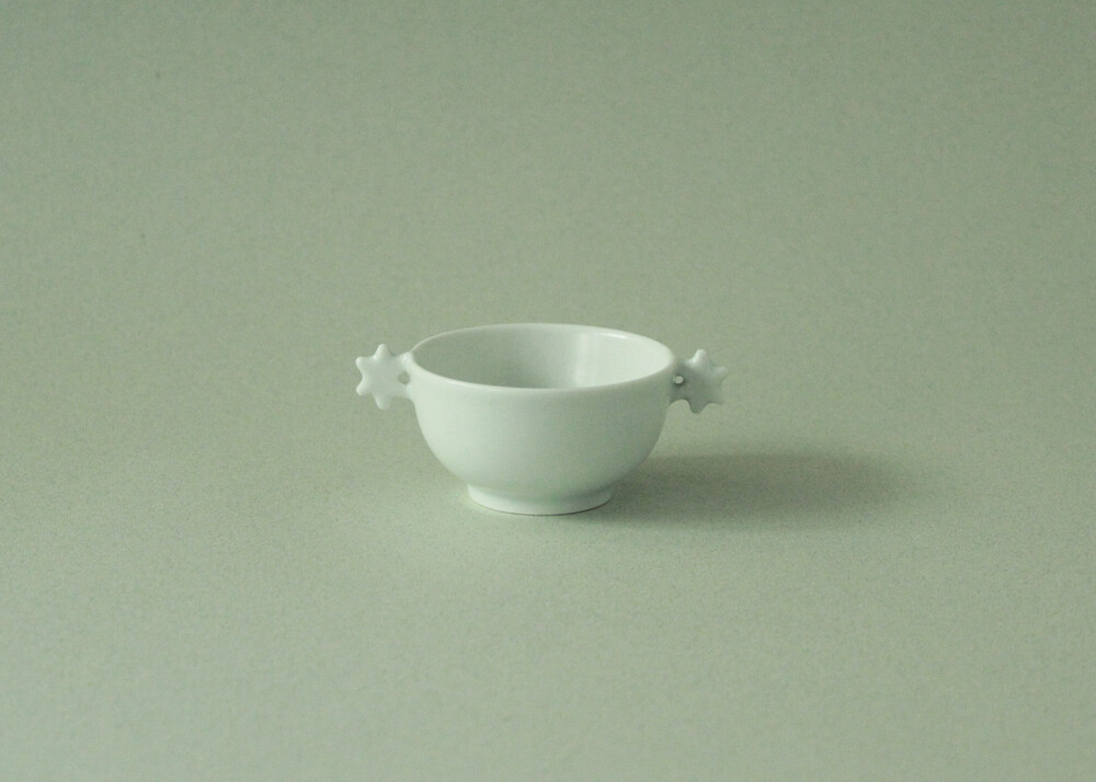 겨울의 조각이 담긴 양이잔 입니다. 색상은 푸른 백자 무광 유약 입니다.